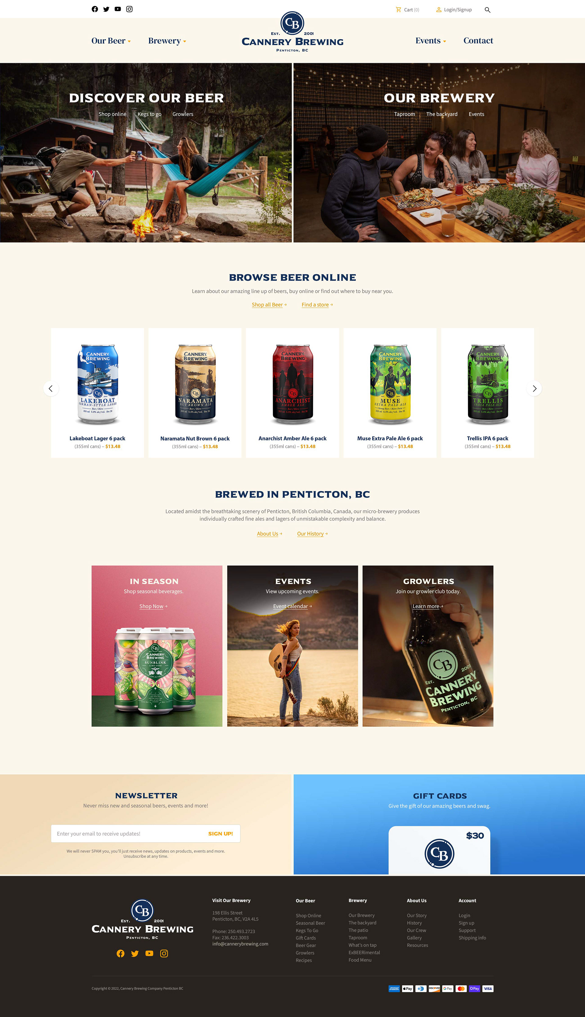 New Cannery Brewing e-commerce experience. Cannery Brewing is a Brewery and restaurant located in Penticton, BC.