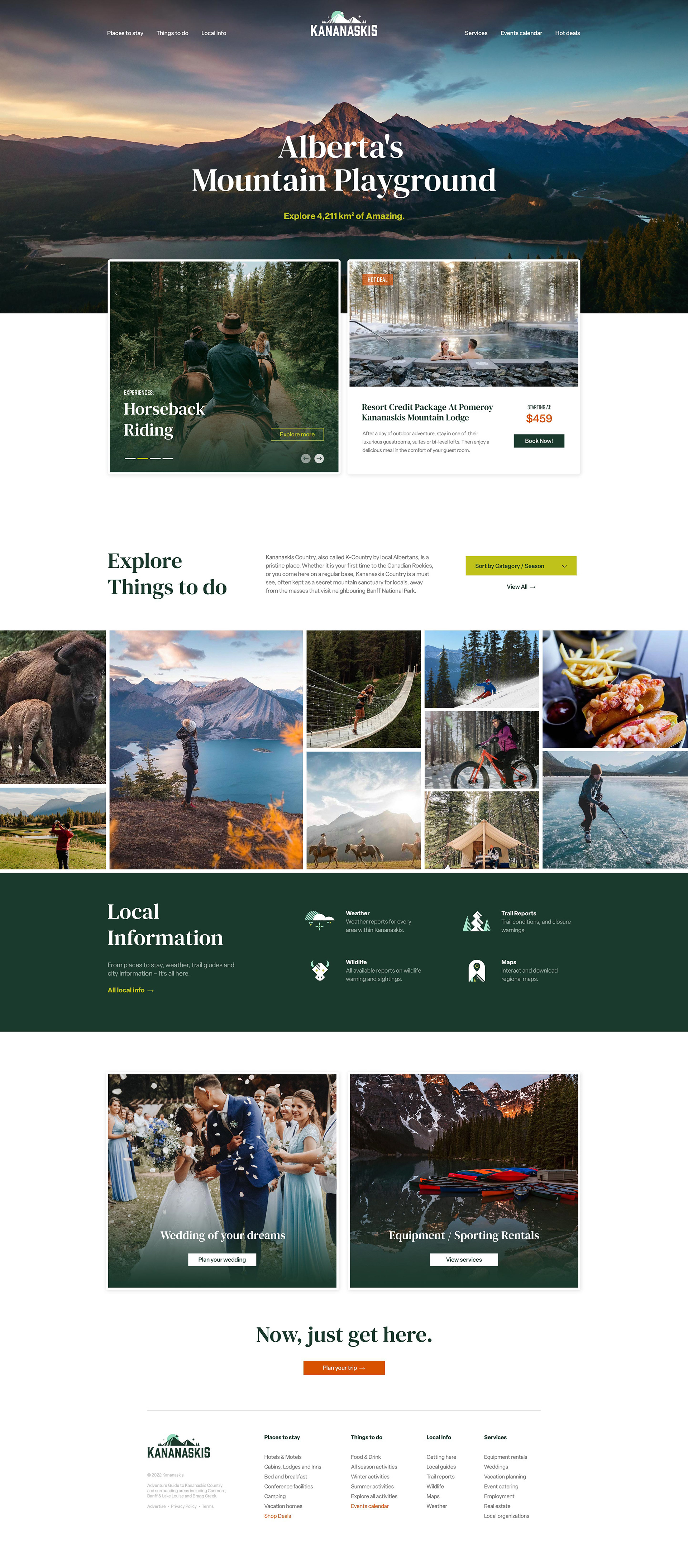 Website created to promote tourism and the 4,000 square kilometres of beautiful mountains and nature of Kananaskis Country.